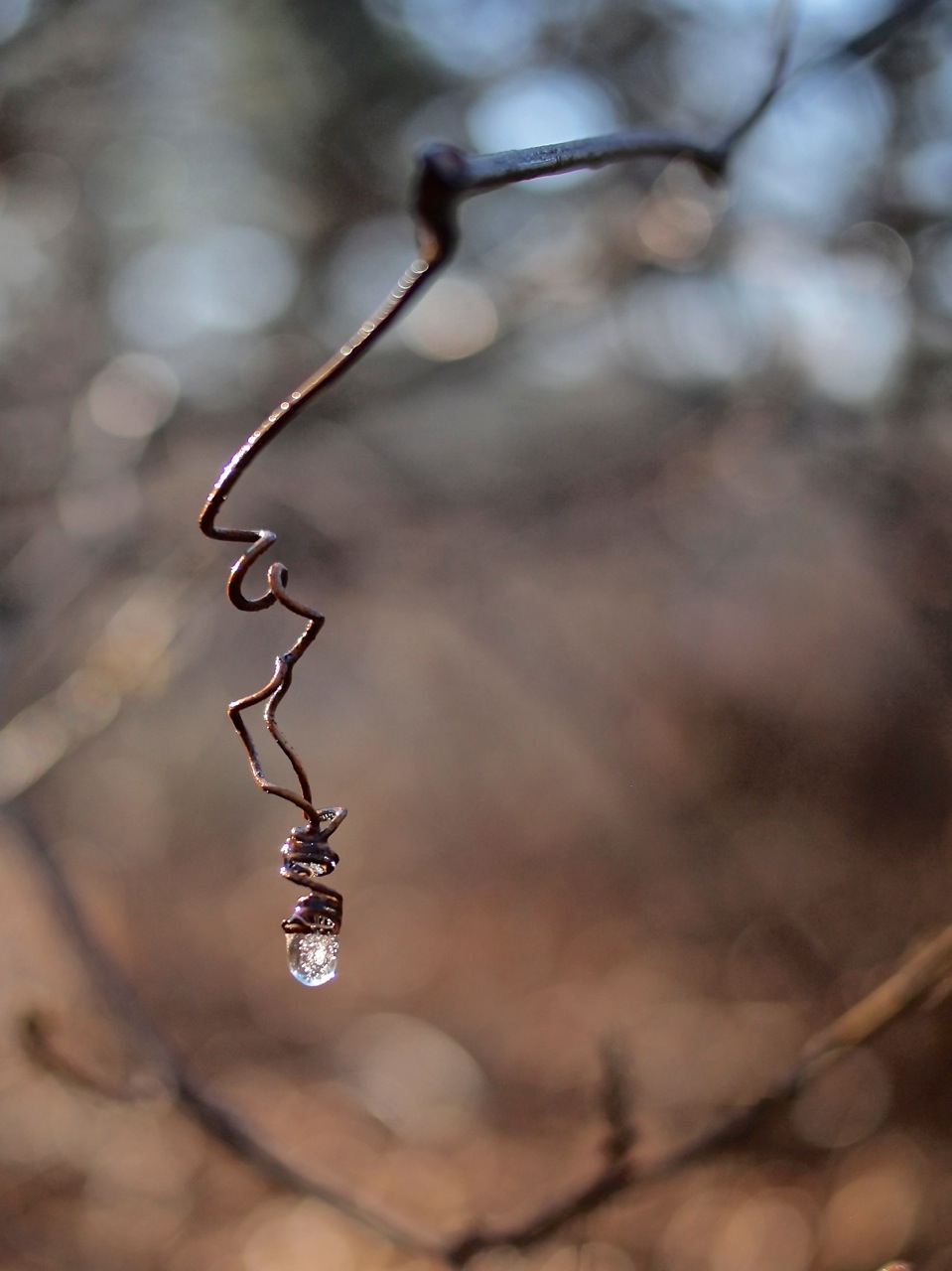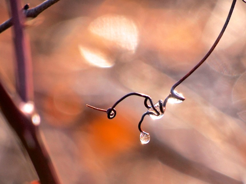 Little balls of ice had been caught in the winding twists of wild grape vines, looking like jewels wrapped in wire.