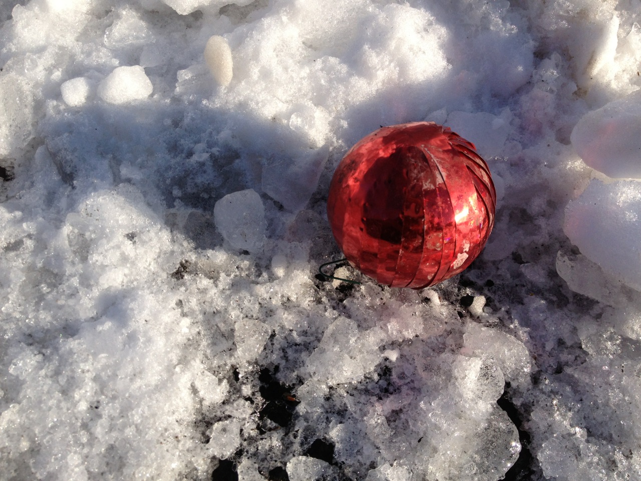 A festive holiday ball that someone dropped in an icy parking lot a couple of years ago. (I’m happy to say that this year, we haven’t yet had more than a few stray flakes of snow. I know it’s coming, but I’m not ready for it yet. I’m still recovering from last winter.)