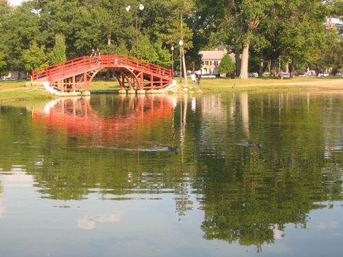 This arched bridge is in a park in central Massachusetts, but it is clearly modelled after Japanese bridges, such as this one, in a park in Nara, Japan.