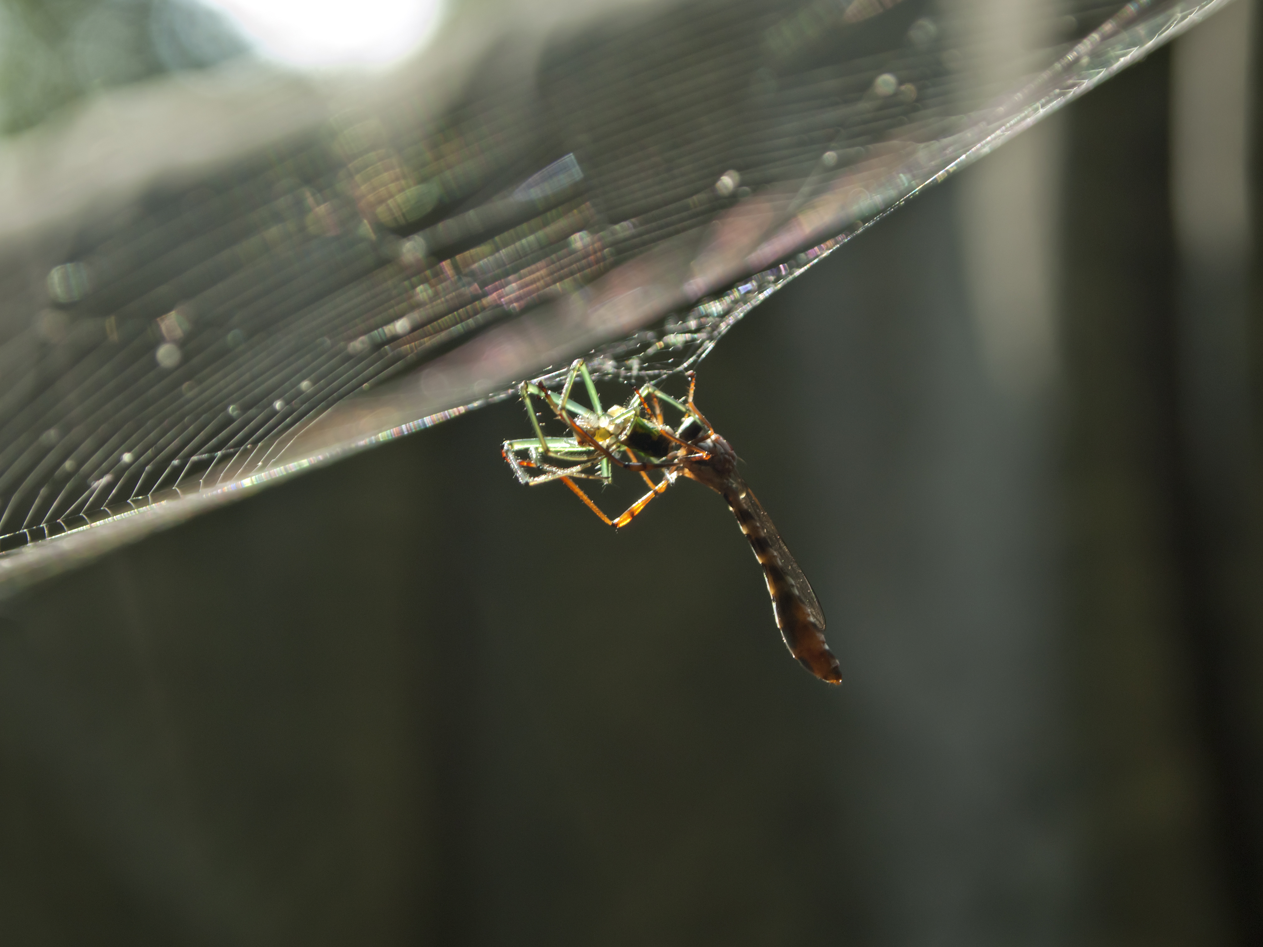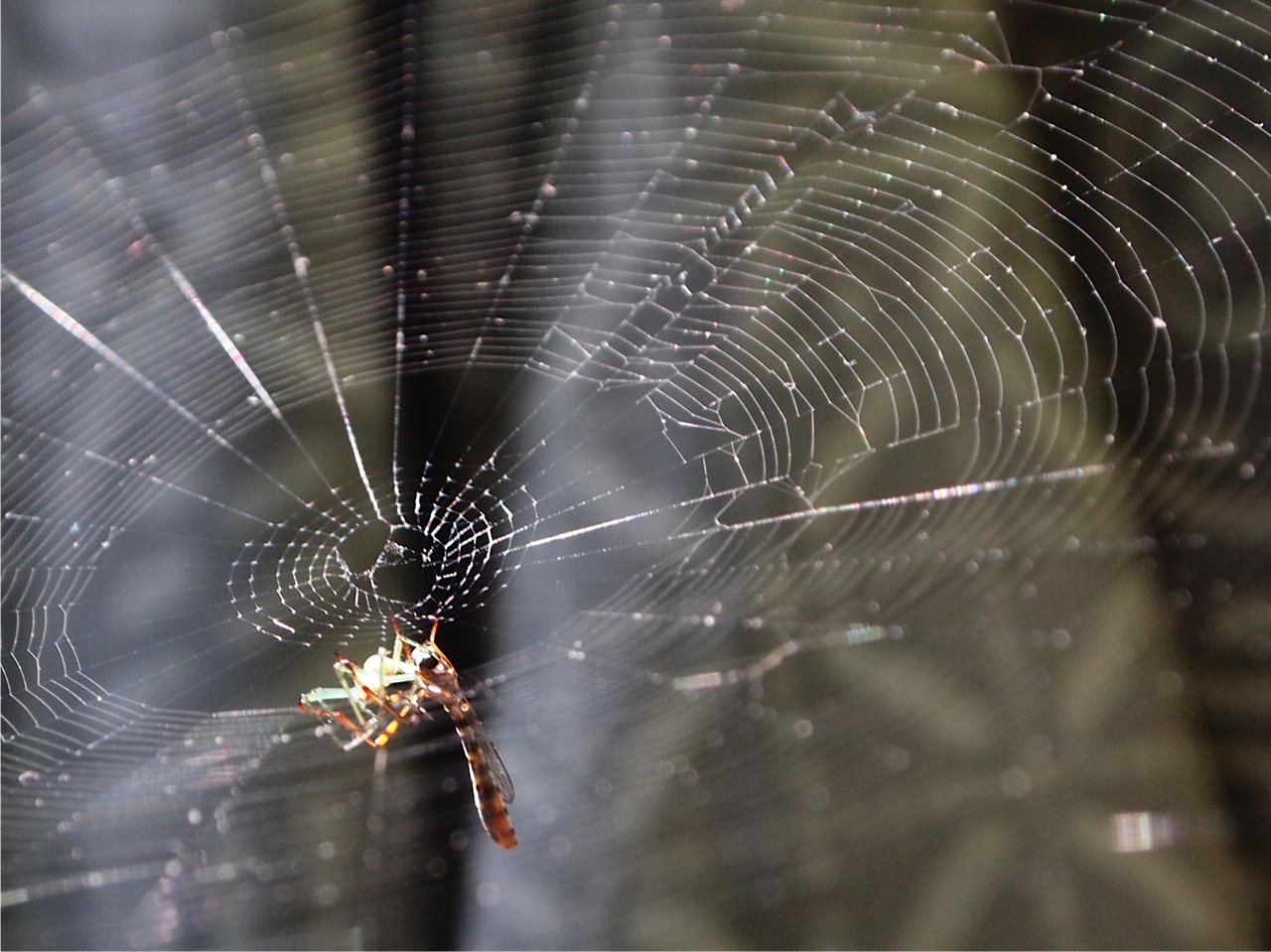 Sometimes things really don’t turn out how we expect. The spider had built such a lovely web only to be caught in it itself. It met an insect that was rather more than it had bargained for.