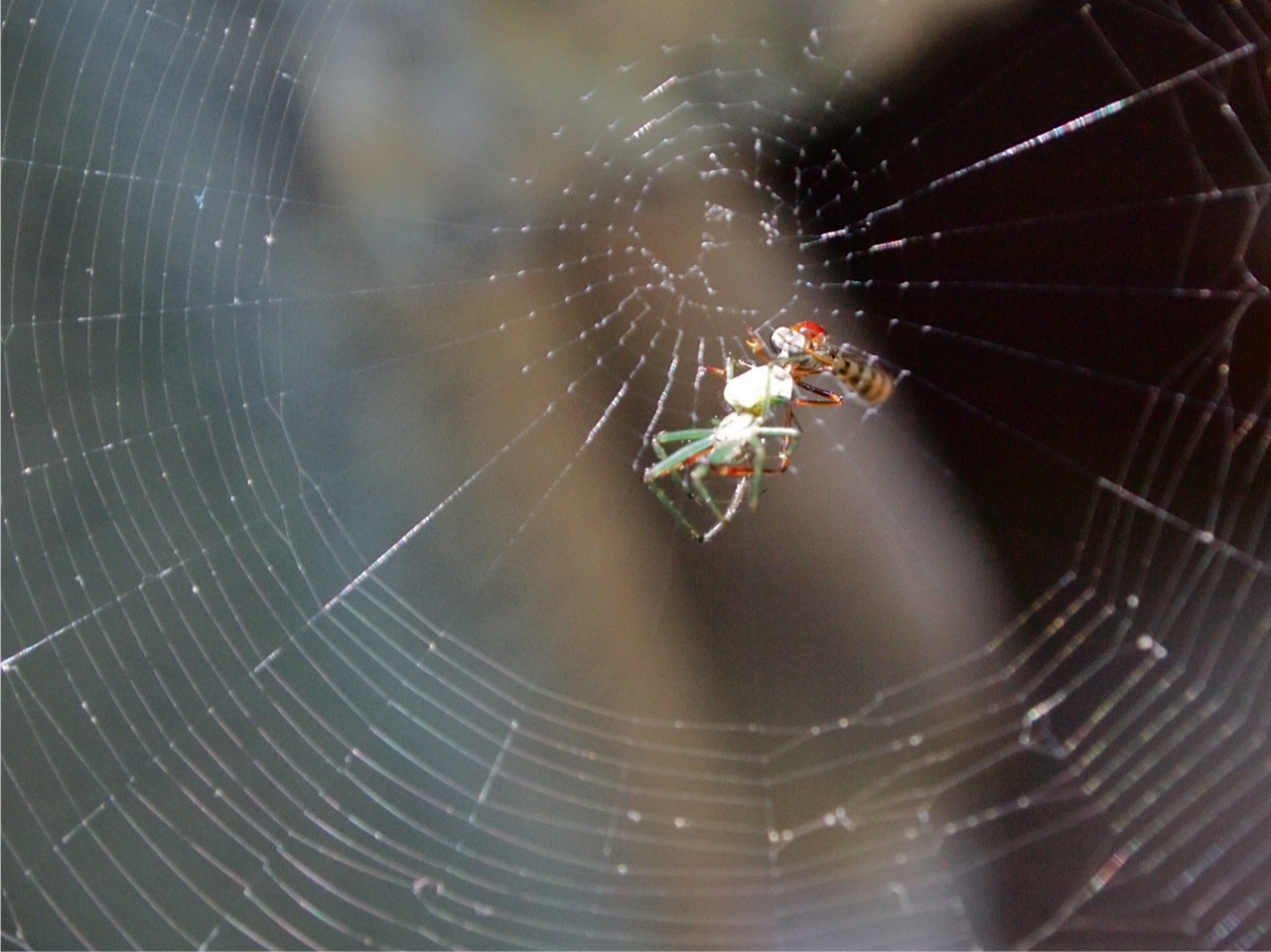 As I looked again more closely, I saw that my first impression was wrong: It was not the spider who had captured the insect.